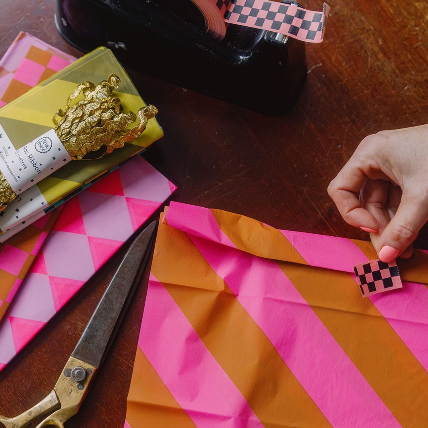 The most colourful gift wrapping fun to make your gifts stand out from the crowd! Rummage through our luxury tissue papers and pair with sparkly ribbons, paper tapes and tags and for smaller gifts discover the pattern paper bags.