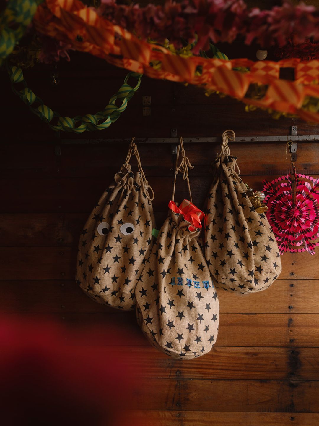 Our much loved Christmas star sack can be personalised in a choice of red or blue embroidered alphabet patches.The perfect Christmas sack to fill with stocking gifts and hang at the end of a bed or under the tree.