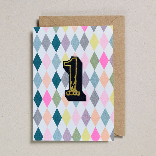 Petra Boase | Age 1 Iron On Patch Harlequin Riso Print Birthday Card
