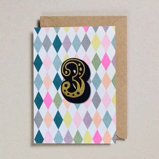 Petra Boase | Age 3 Iron On Patch Harlequin Riso Print Birthday Card