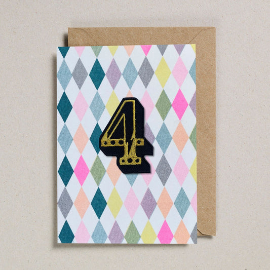 Petra Boase | Age 4 Iron On Patch Harlequin Riso Print Birthday Card