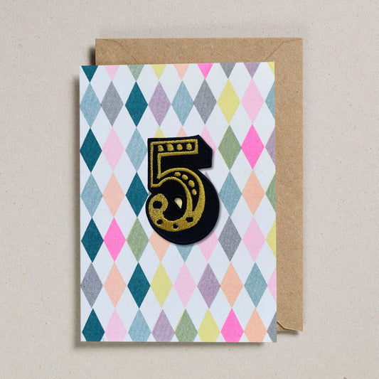 Petra Boase | Age 5 Iron On Patch Harlequin Riso Print Birthday Card