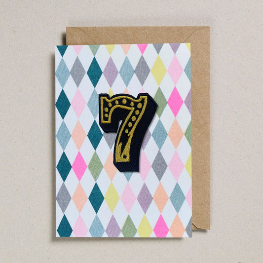 Petra Boase | Age 7 Iron On Patch Harlequin Riso Print Birthday Card