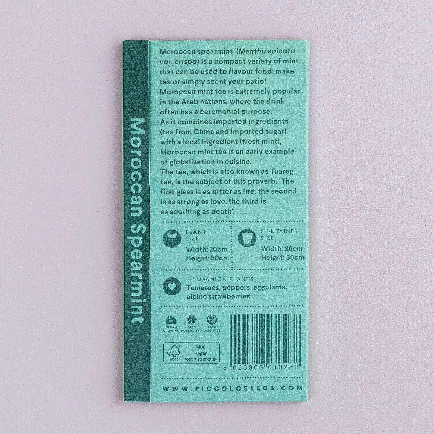 Moroccan Mint (Mentha spicata var. crispa) is a pretty, compact variety of mint that looks good in your garden and can be used to flavour food, make tea or simply scent your patio! Moroccan mint tea is extremely popular in the Arab nations, where the drink often has a ceremonial purpose, especially when made for guests by the man of the house. As it combines imported ingredients (tea from China and imported sugar) with a local ingredient (fresh mint), Moroccan mint tea is an early example of globalization in cuisine. The tea, which is also known as Tuareg tea, is the subject of this apt proverb: ‘The first glass is as bitter as life, the second is as strong as love, the third is as soothing as death’.
