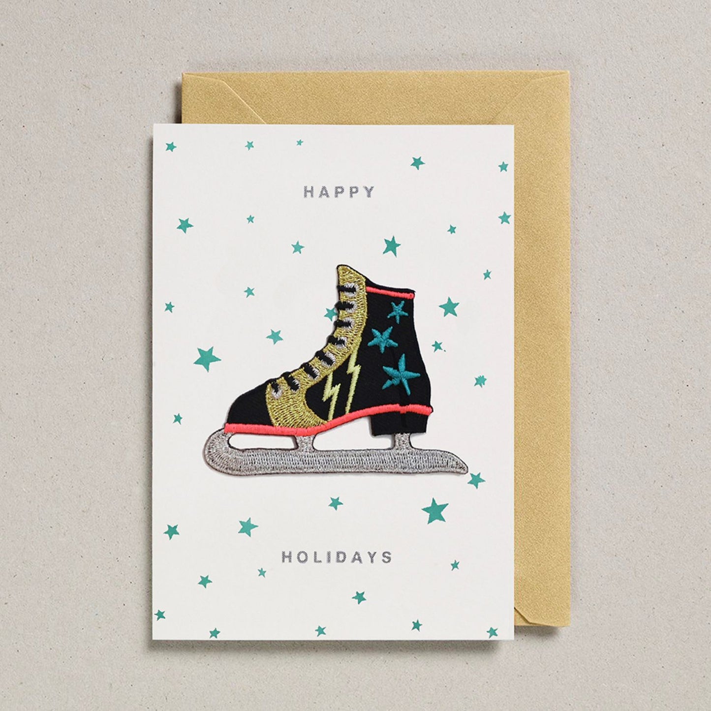 Iron on Patch Christmas Card - Ice skate Happy Holidays