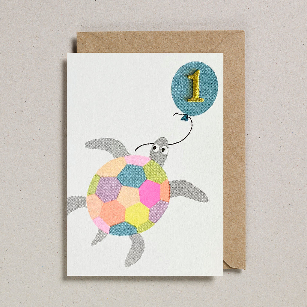 This Pets Turtle Age '1' greeting card is a unique Risograph print using soy based inks.