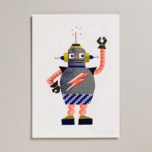 This unique Robot risograph print using soy based inks is lovingly printed by us in our Norwich studio.