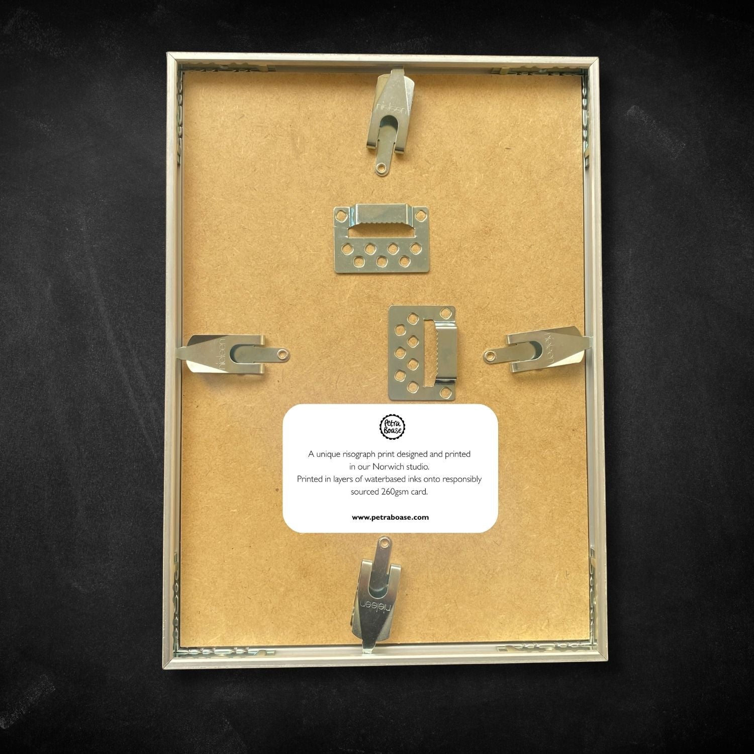 This unique Daxon risograph print using soy based inks is lovingly printed by us in our Norwich studio.
